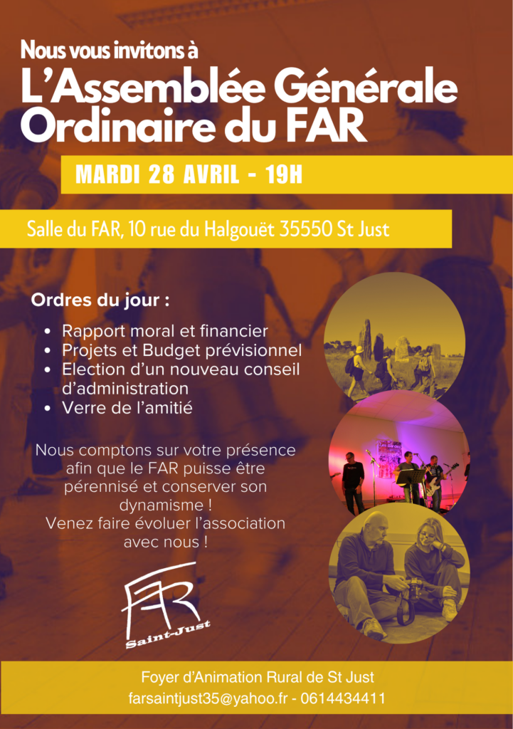 Salle du FAR, 10 rue du Halgouët, 35550 Saint-Just – Organisé par le FAR (Foyer d’Animation Rural) avec le soutien du P’tit Festival. Contact : Robert COTTO (Président du FAR) : 06 14 43 44 11.